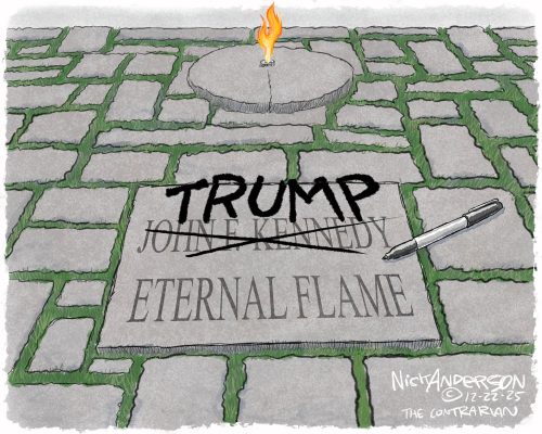 • Trump has raised the possibility of awarding himself a $1-billion settlement of the lawsuit he’s filed against the government he runs…in effect, judge, jury and beneficiary. Why stop at a billion? Why not a trillion or gazillion? Of course he’ll say tariffs will cover the check.